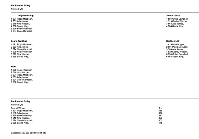 Pre Championship Results